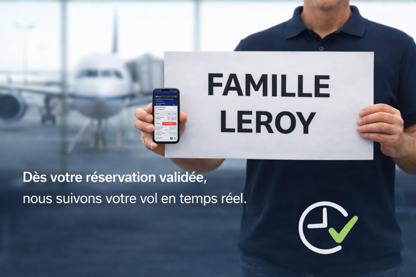 Dès votre réservation validée, nous suivons votre vol en temps réel. Même en cas de retard, votre chauffeur vous attendra à l’aéroport sans frais supplémentaires.